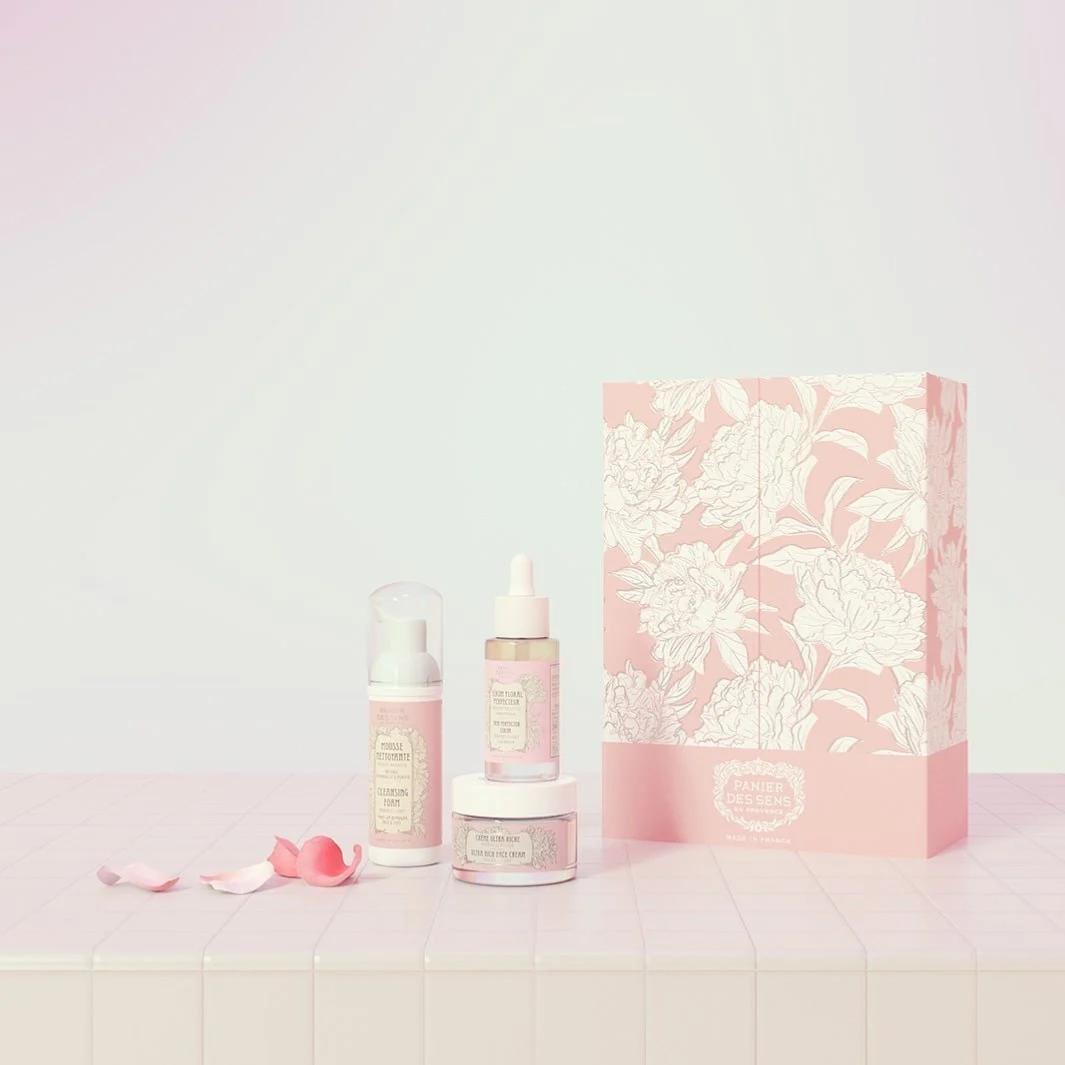 Ce coffret réunit trois soins complémentaires enrichis en extrait de pivoine cultivée et récoltée en France, reconnue pour ses propriétés hydratantes, apaisantes et révélatrices d’éclat.